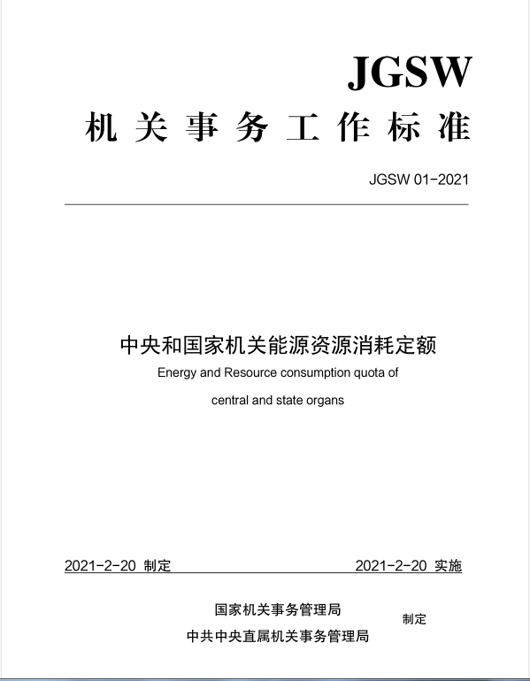 《中央和國(guó)家機(jī)關(guān)能源資源消耗定額》機(jī)關(guān)事務(wù)工作標(biāo)準(zhǔn)